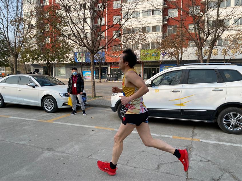 在长跑过程中有一位穿着红色跑鞋的老师引起了大家的关注,即使是在凛凛冬日,他依然不畏寒冷,迈着矫健的步伐,均匀的节奏,显得那么有活力,热情如火一般。