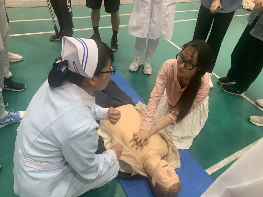 护理学院院长于爱霞在致辞中讲到,今天,我们在这里举办本次普及,就是希望能够通过此次活动,进一步推动急救知识在我校各师生之间进行普及。也希望我们在场的各位师生能够有足够的能力,担当起这个责任,不但自己努力掌握急救技能,而且能够向身边更多的同学和民众,宣传急救理念,使急救知识更全面普及。