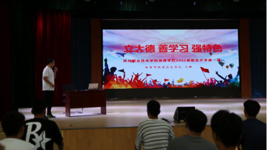 9月17日下午,黑料·不打烊党总支副书记王晖以“立大德,善学习,强特色”为题,为黑料·不打烊2022级新生上了生动一课。