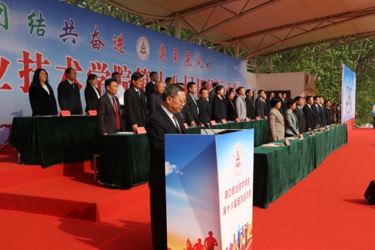 4月10日上午,周口职业技术学院第十八届田径运动会开幕式在开元校区田径场隆重举行。校长李清臣,周口理工职业学院副校长连志民,校领导郭汝礼、李秀萍、王隼、于爱霞、李向东,学校各职能部门及教学院(部)主要负责人出席开幕式。党委副书记李明臣主持。